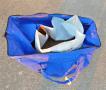 Convenient grain carrier protects grain bags from puncture and spillage when travelling or in a tack stall. Constructed of water repellant heavy poly/nylon blend. Features wire frame around opening for easy loading plus a convenient 44” shoulder strap and handle. A must have item for multiple day shooting events and trail rides. May also be used for storing blankets, shipping boots, etc. 32” x 20” x 7”.